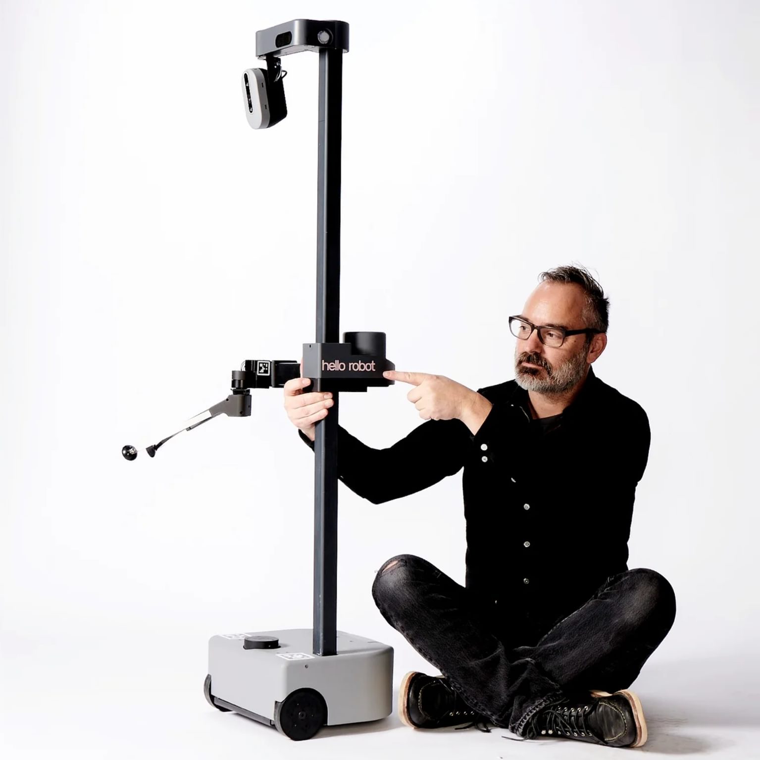 Hello Robot's Stretch robot appears as a moveable platform with an extendable limb—its purpose and skillset are impossible to know just by looking at it. [Picture by Hello Robot]