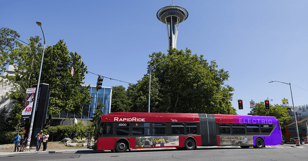Recently, we partnered with King County Metro, one of the largest transit systems in the United States, to create a new livery design for their local and regional bus service and their bus rapid transit service called RapidRide. These new designs, celebrating their admirable transition to an all-electric fleet, will breathe new energy into the streets of King County and the greater Seattle area.