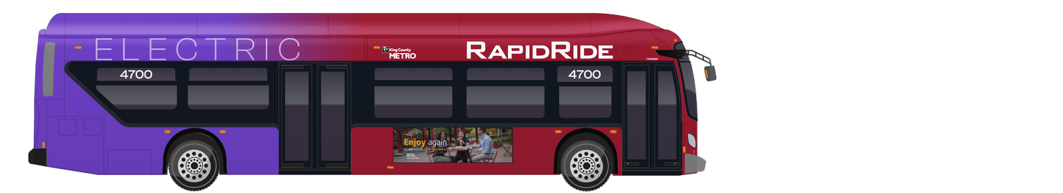 Centering the user-experience led us to a single design layout rendered in two colors: New Energy Yellow for neighborhood service, and RapidRide Red for bus rapid transit service. Each color has a clear purpose, and the livery becomes iconic by staying consistent with these expectations.