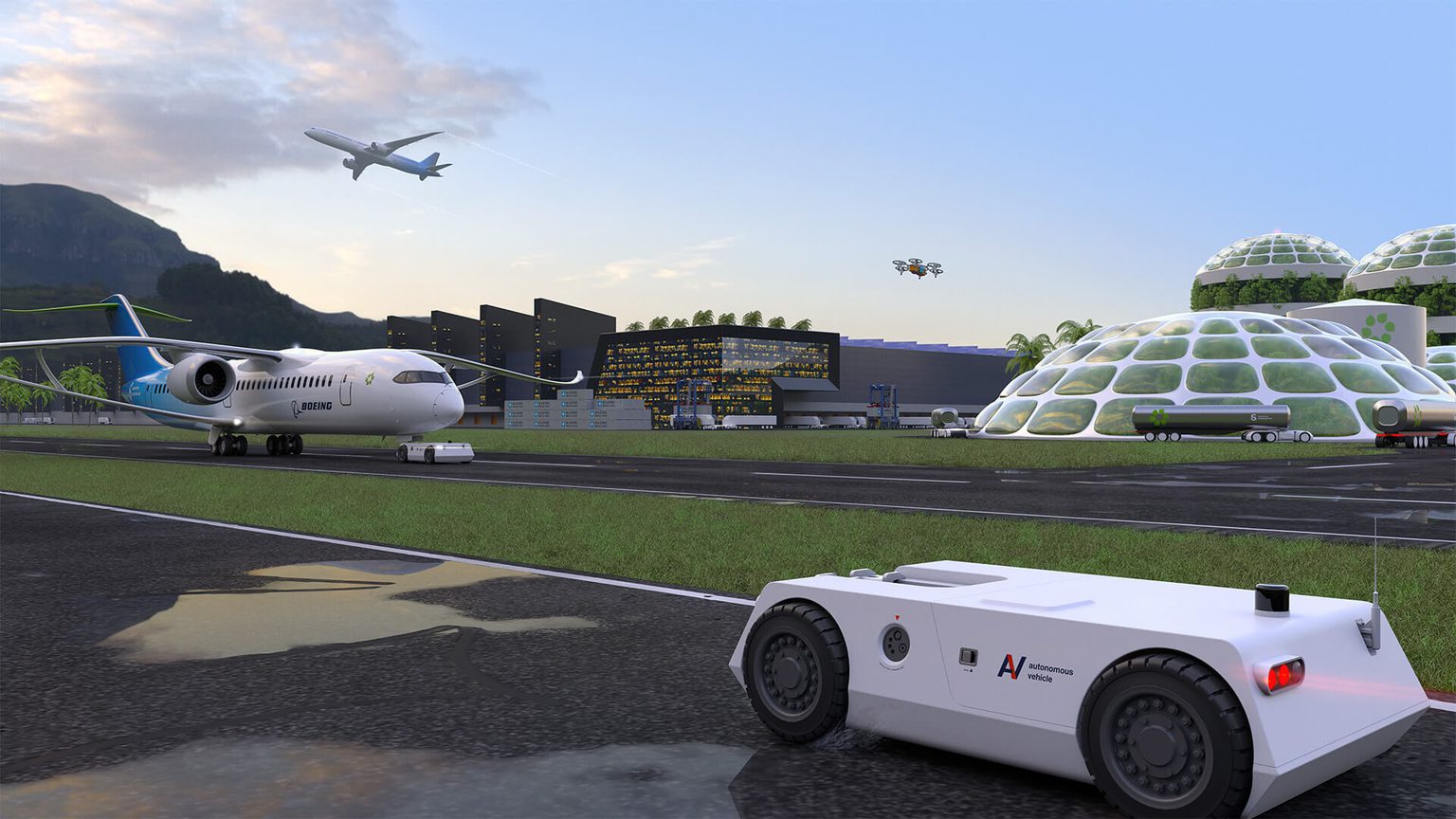For example, short-haul travel—from Brooklyn to Boston, for instance—very well may be completed in an eVTOL (electric vertical take-off and landing) aircraft by 2050. As a leader in innovative aviation technologies, Boeing has already been investing in eVTOL engineering for years, and in 2022, made a significant contribution to their joint venture with Wisk, the eVTOL developer.